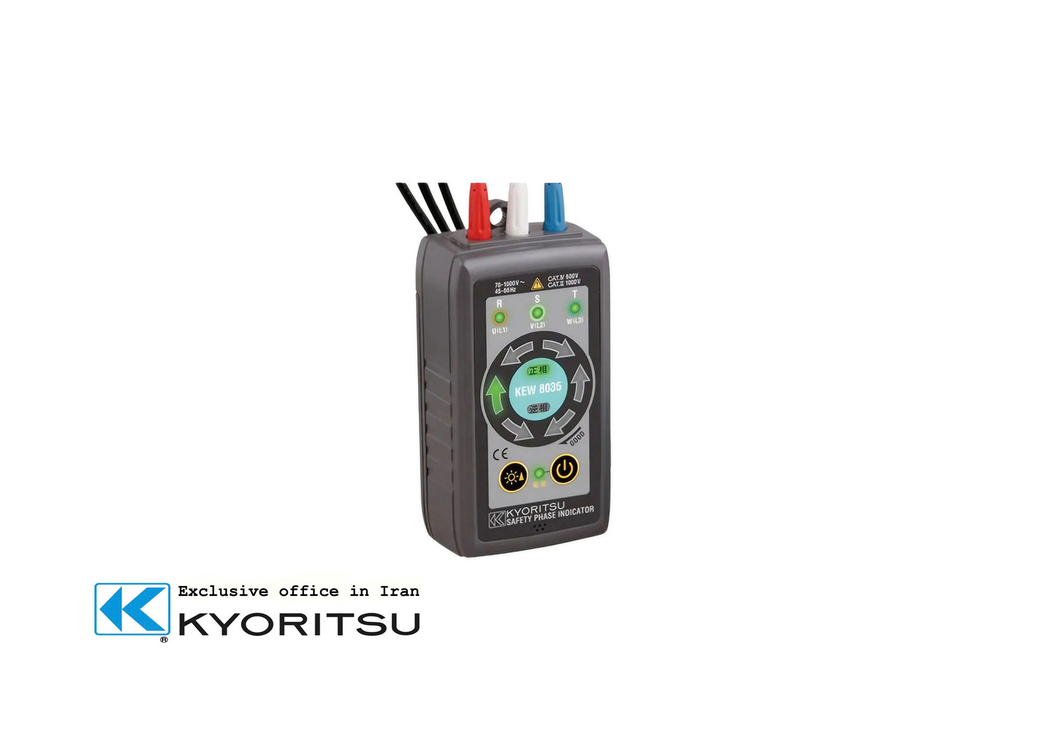 تستر توالی فاز kyoritsu 8035 با قابلیت تست ایمن بدون نیاز به تماس مستقیم بین پراب ها و سیم مورد نظر برای تجهیزات سه فاز استفاده نمود.